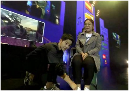 终于到了令人期待的游戏环节,干瞪眼、赞赞赞、石头剪刀布等让幸运粉丝又一次亲密接触仲基欧巴,并获得了由偶像男神亲手递出的珀莱雅套装作为参与奖品。