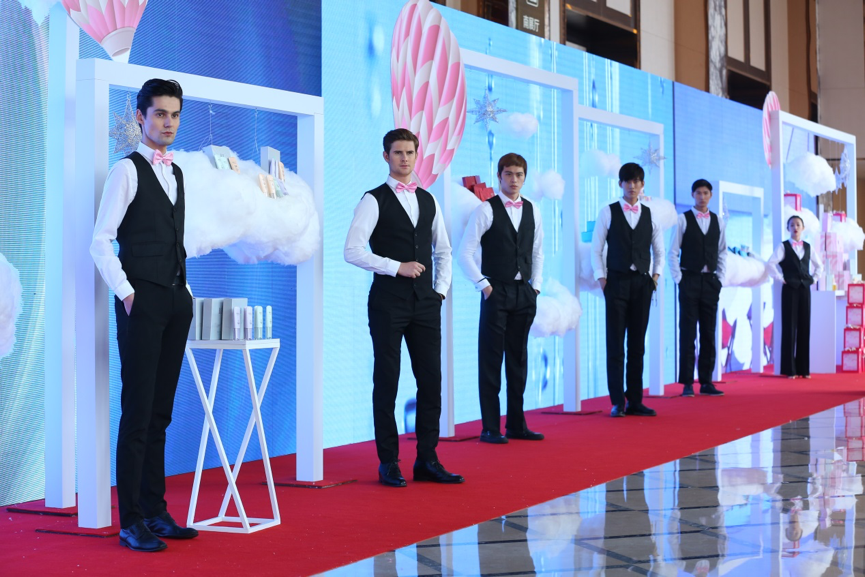 这一次,靓白芯肌将带领我们去往的是南法的蔚蓝海岸。为了打造身临其境的感觉,珀莱雅首次尝试极具视觉震撼力的环屏巨幕。一踏入会场,便如同置身在纯净阳光的度假天堂,粉白相间的热气球,柔美细腻的白色云朵,以及背景LED屏幕上清晰播放的南法风情片,勾勒出一派温柔曼妙的南法风光。发布会以自由随性的鸡尾酒会形式展开,不停歇的爵士乐和穿梭其中的外模侍者,让每一个与会者都深深沉醉在这片异国海洋风情之中。